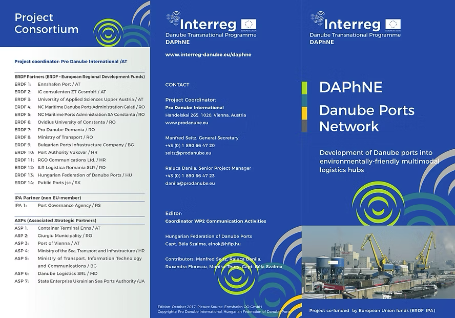Dňa 23. októbra 2015 vyhlásil Interreg Nadnárodný Program Dunaj výzvu na predkladanie žiadostí o grant. Projekt DAPhNE bol v tejto výzve úspešný a spoločnosť Verejné prístavy, a.s. sa zapojila do jeho realizácie ako jeden z projektových partnerov. Celková výška rozpočtu projektu je 2.985.406,15 EUR, z čoho sú pre spoločnosť Verejné prístavy, a.s. alokované finančné prostriedky vo výške 188.255,00 EUR. Realizácia projektu prebieha od 1. januára 2017 s plánovaným ukončením 30. júna 2019.